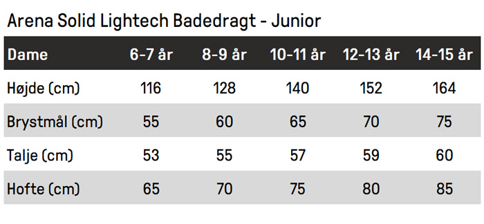 Let og sporty badedragt, der med et atletisk udtryk er en flot træningsuniform til unge piger som elsker at svømme. Med Solid Lightech Junior har Arena skabt en badedragt der giver unge piger de bedste muligheder for at få gode oplevelser med deres sport, og ikke gå på kompromis med kvaliteten af deres udstyr.