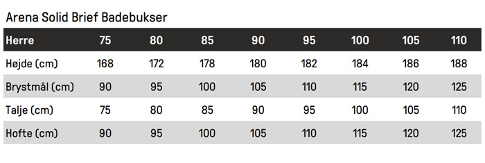 Arena Solid Brief er de tidløse og sporty badebukser fra den førende producent af svømmedragter til professionelle og hobbyatleter. Badebukserne er af høj kvalitet og det oplagte valg til træning og daglige svømmeture, hvad enten det er i havet eller i poolen. Vælger du badebukser fra Arena får du det bedste udstyr der holder til mange timers brug.