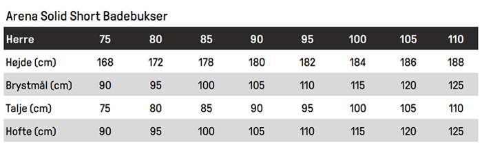 Arena er den førende producent af svømmedragter til professionelle og hobbyatleter, og deres Solid Short er de alsidige og sporty badeshorts med veltestede egenskaber. Med Arena badeshorts får du et produkt af høj kvalitet, som er udviklet til mange timers svømmetræning og andre udfordringer i og under vandet.