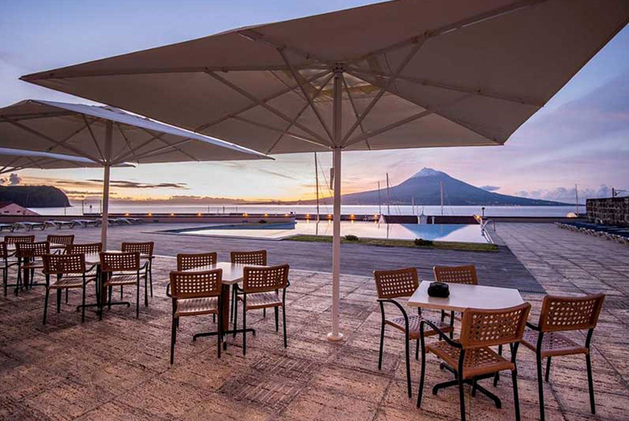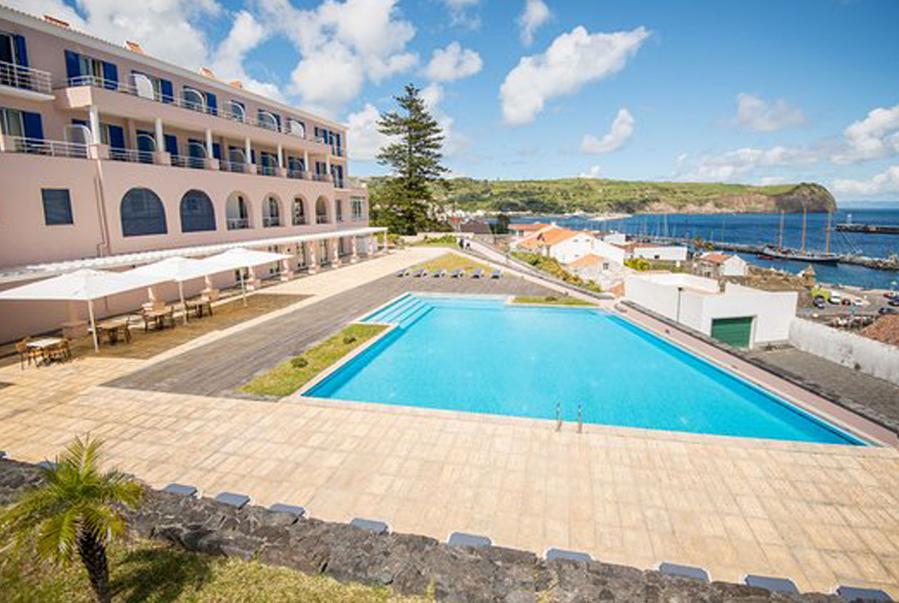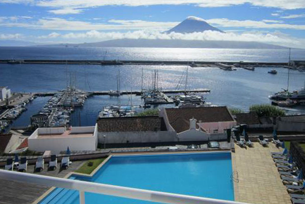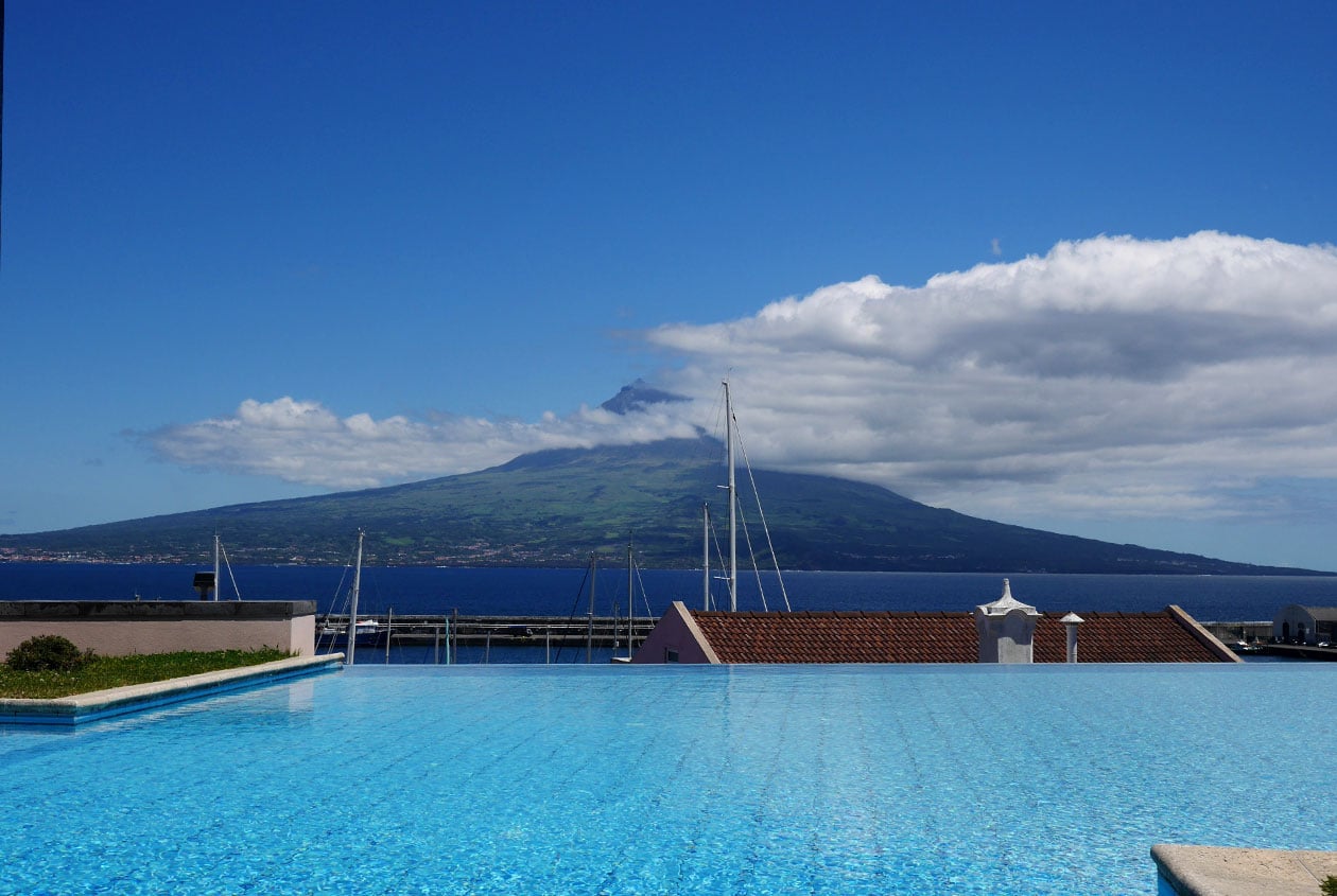 Lækkert hotel på Faial med pool og udsigt til Mount Pico