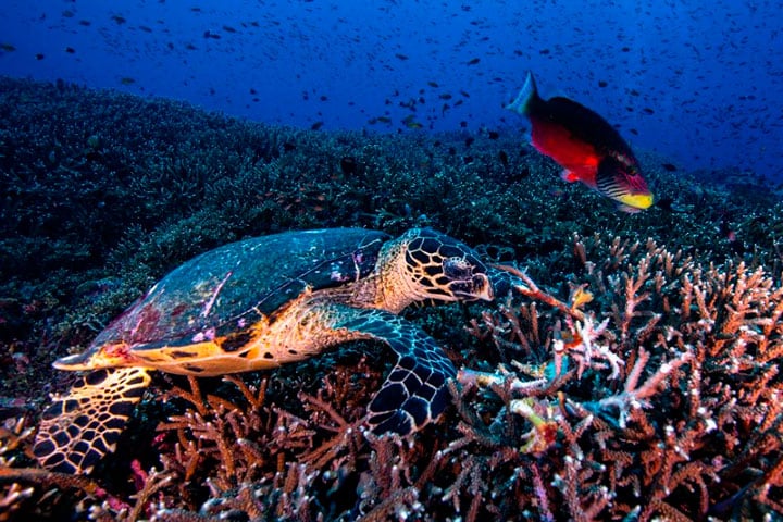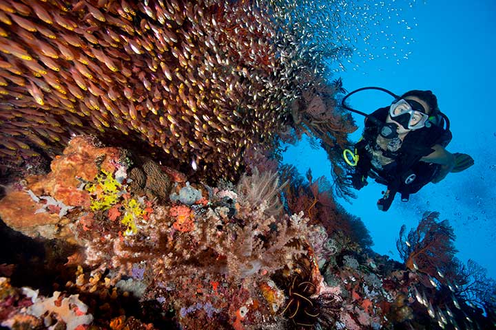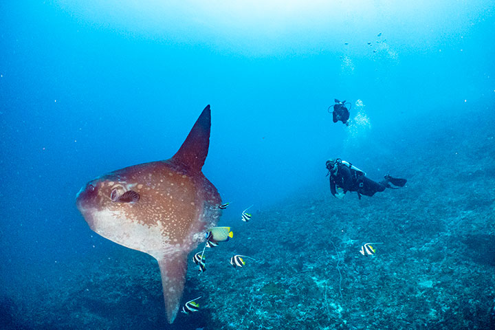 Mange dykkersteder på Bali er let tilgængelige direkte fra kysten, varmt vand, god sigtbarhed og ofte oplever du kun let strøm. Koralrevene er stadigvæk i god stand. Der er masser af liv at dykke efter som skildpadder, shrimps, muræner, blæksprutter, nøgensnegle, bumphead parrotfish, pygmæ søheste og meget mere. Du kan også opleve revhajer og på nabo øen Nusa Penida kan du året rundt opleve mantarays. Vi rejser i den bedste sæson for at opleve de majestætiske klumpfisk (Mola Mola).