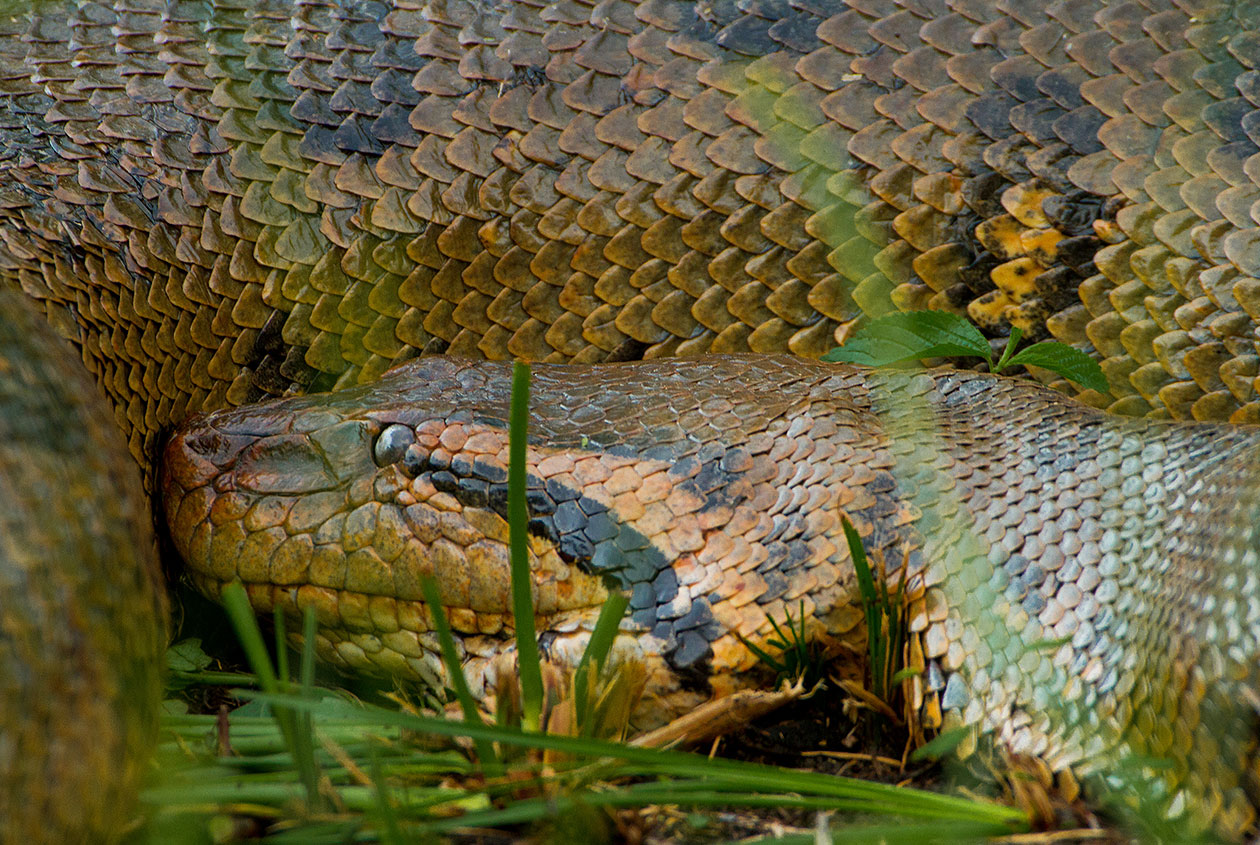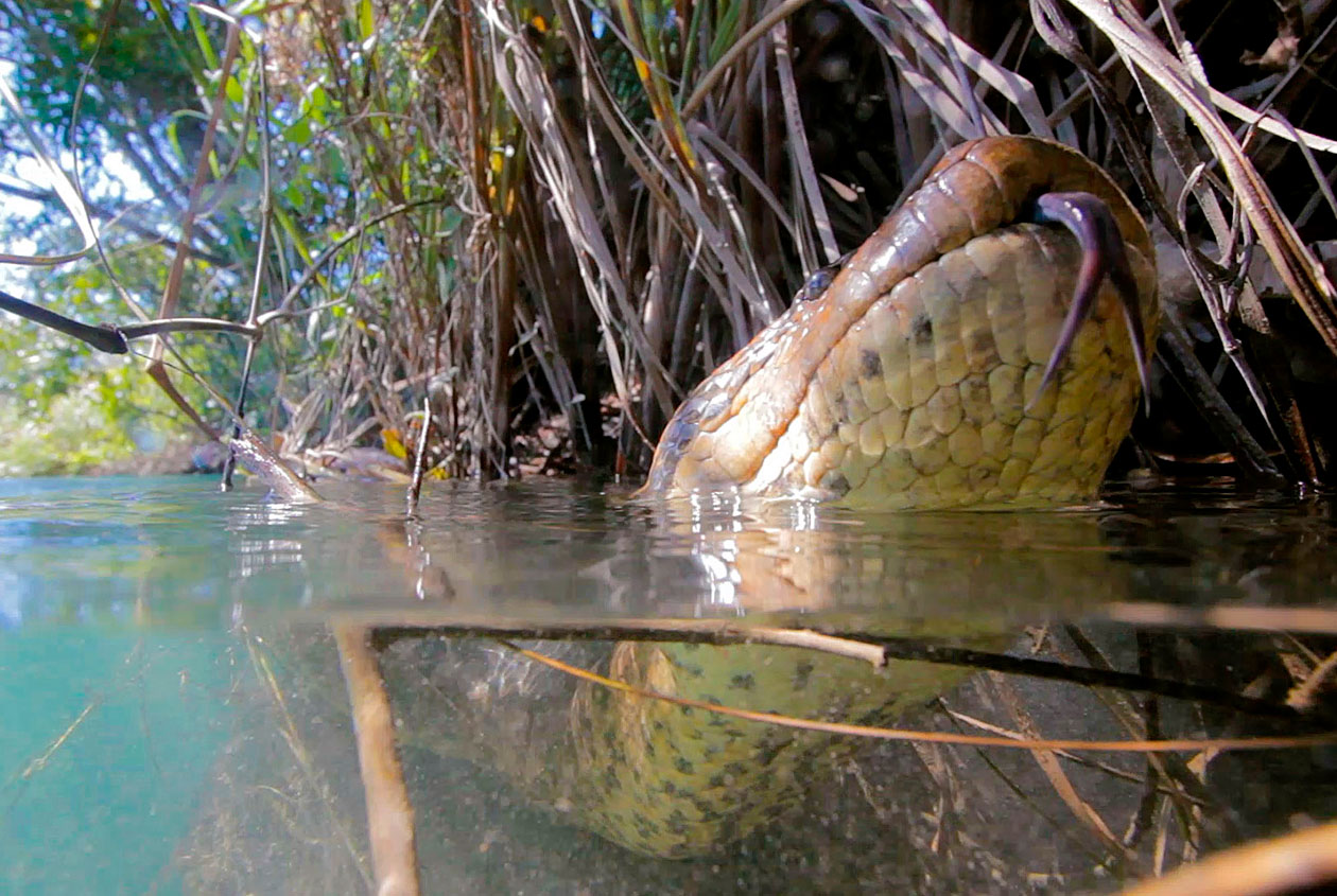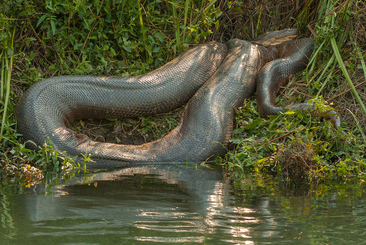 Anakondaer kan blive op til ca 10 meter lang og veje 250kg og er verdens største slange. Modsat de fleste andre kvælerslanger, opholder anakondaen sig for det meste i vand, men går også på land. Den er et bagholdsrovdyr som overrasker og kvæler sit bytte som typisk er flodsvin, caimaner, hjorte og fugle der lever langs floden.