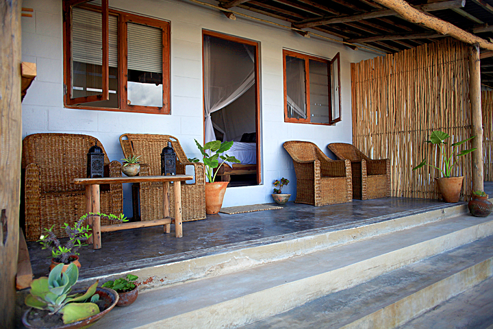 Alle værelser har eget bad/toilet, A/C og myggenet samt et køkkenområde med køleskab, elkedel og komfur. På terrasse har hvert værelse solstole og borde til rådighed såvel som en fuldstændig uhindret og smuk havudsigt. Alle værelse har gratis wifi samt 1 queen seng og 1 enkeltseng