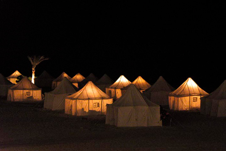 Samme som beduintelt, men det er ca. dobbet så stort og der er derfor mere luft + der er blevet plads til sækkestole og bord, reoler, et mini køleskab og en fan. Derudover kan det også reserveres med dobbeltseng i stedet for 2 enkeltsenge. Vores "fra" priser er med overnatning i Royal telt.