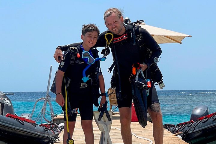 - Der er fri leg i Rødehavets fantastiske dykkerparadis med masser af oplevelser og muligheder for at få mere erfaring på en god og sikker måde. I kan bl.a. lave jeres egne dyk på husrevet enten direkte fra stranden eller fra båd. Og så er der også mulighed for at deltage på guidede ture som f.eks. byder på vragdyk, havskildpadder eller delfiner.