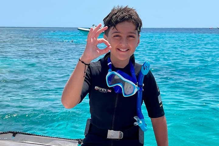 Drømmer du om at lære og dykke? Hvis ja, så læs endelig videre. Vi har sammensat den ideelle ”Lær at dykke–rejse” til dig, hvor vi kombinerer et PADI Open Water dykkerkursus med azurblåt vand, havskildpadder, smukke koraller og utrolig hyggelige omgivelser langt fra masseturisme. Her får du de optimale rammer og den bedste start på din dykkerkarriere. Du tager den teoretiske E-learning del hjemmefra på sofaen med en kop kaffe i hånden og rejser derefter til Rødehavet og færdiggør den praktiske del, omgivet af smukke koraller, masser af fisk og havskildpadder i en fantastisk dykkerlejr. Man skal blot være 10 år gammel for at tage PADI Open Water-kurset!