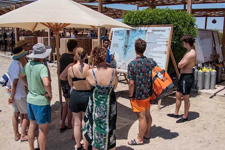 Du kan dykke fra solopgang til solnedgang og du bestemmer selv hvornår og hvordan – du kan vælge at dykke fra stranden eller blive sejlet ud med gummibåd. Det er så nemt at finde rundt på husrevet, at du bare behøver en makker for at komme i vandet.