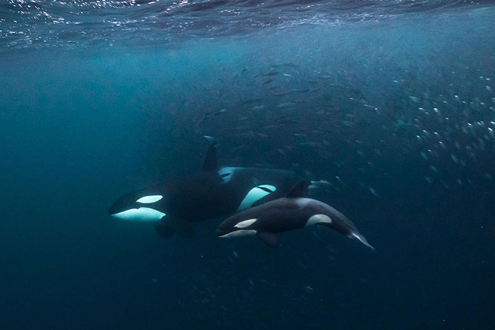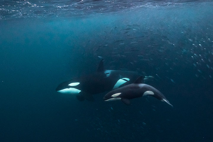 Fra oktober til februar migrerer enorme mængder sild fra Atlanterhavet ned langs Norges nordvestlige kyst, hvor de først overvintrer i fjordene langt nordpå og derefter gyder længere sydpå. Sildene tiltrækker rovdyr i form af et stort antal spækhuggere og pukkelhvaler, der kommer helt ind i fjordene for at udnytte fødekilden og æde sig mætte i sild. Sildene gør det lettere at komme tæt på de store dyr, og vi har derfor rigtig god mulighed for at snorkle og fridykke med spækhuggere og pukkelhvaler.