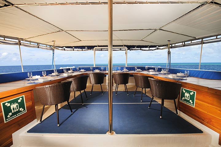 Efter dagens dykning kan du nyde en drink i solnedgangen på dækket genopleve dagens store oplevelser og glæde dig til morgendagens spektakulære dykning i ét af de mest afsidesliggende øriger i Stillehavet…