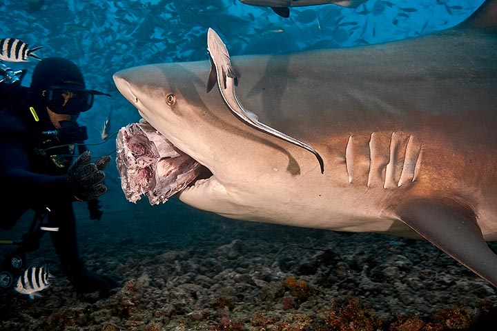 Beqa Lagoon er verdensberømt for dykkerstedet ”The Bistro” som er anerkendt som ét af verdens bedste hajdyk hvor du kan dykke med op til 8 forskellige typer hajer. Professionelle hajdykkere tillokker hajerne ved fodring, mens du kun sidder et par meter fra det hele og kan opleve de mange store tyrehajer, sorttippede revhajer, hvidtippede revhajer, grå revhajer, citronhajer, nursehajer, silvertiphajer og endda også tigerhajer hvis du har lidt held med dig. Udover hajerne er der ti-tusindvis af fisk på dykket deriblandt kæmpe nysgerrige groupers og giant trevally. Oplevelsen består af to dyk på hhv. 25m og 18m kun ca. 10min sejltur fra dykkercentret og er et must-do på din dykkerrejse til Fiji og Beqa Lagoon.