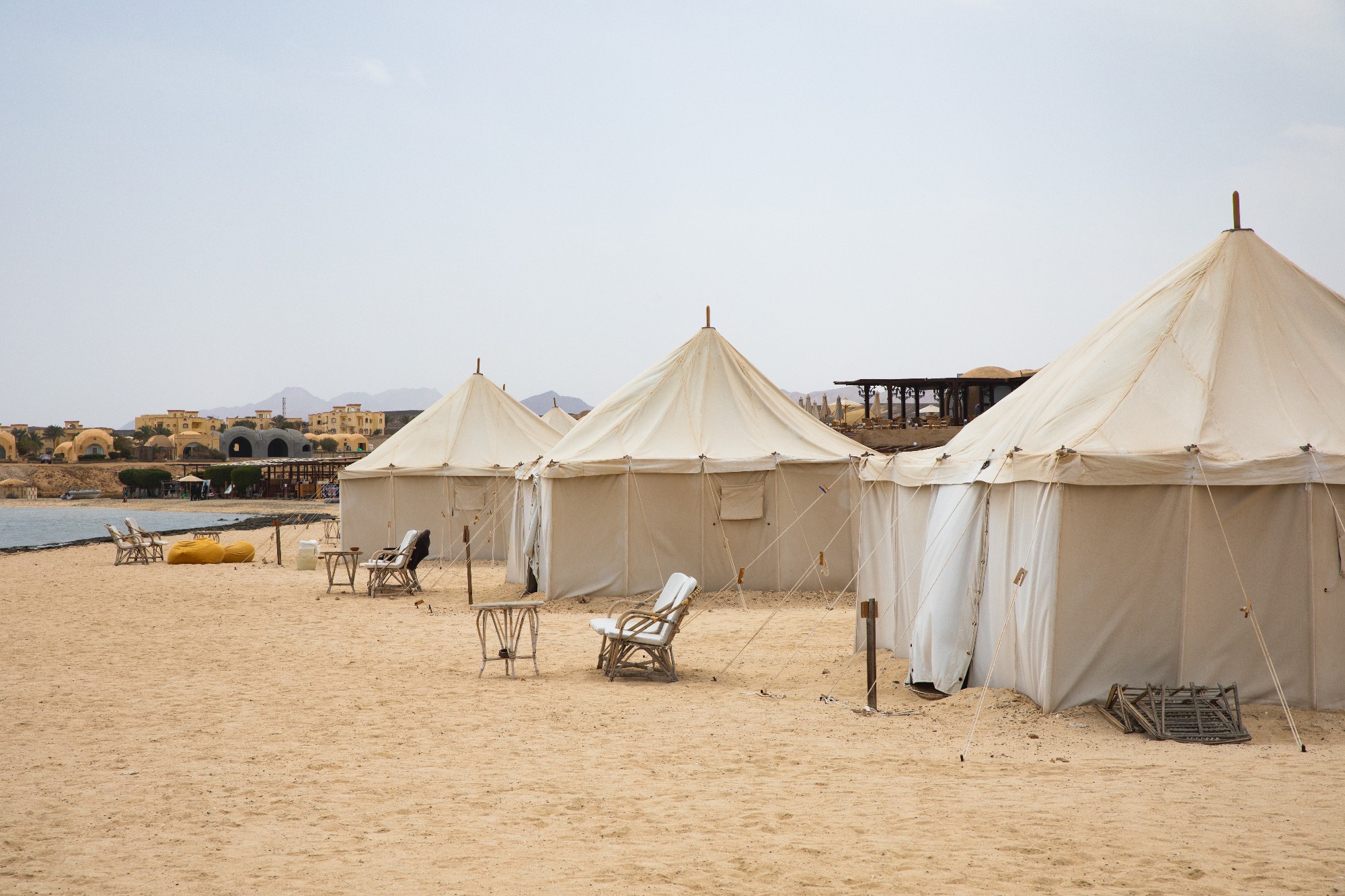 Royal Beduintet er dejligt stort og har god luft. I et Royal Beduintelt er der plads til sækkestole og bord, reoler, et mini køleskab og en fan. Derudover kan det også reserveres med dobbeltseng i stedet for 2 enkeltsenge.