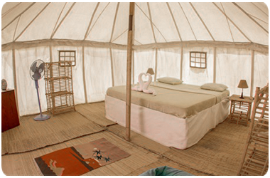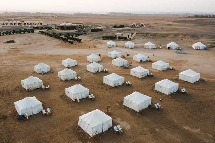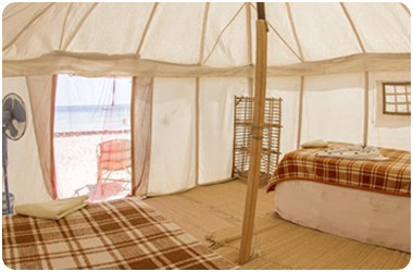 Den mest primitive, men samtidig også den hyggeligste overnatningsmulighed. Teltene står på stranden og er udstyret med 2 senge, belysning, elektricitet, en fane, gulvtæppe og en hylde til tøj. Der er pæne og rene fælles toilet/bade faciliteter. Vores "fra" priser er med overnatning i beduintelt.