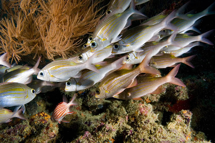 Maldivernes flotte koralrev byder på er hjemsted for mantarokker, stingrays, skildpadder, napoleon fisk, muræner og stimer med tusindvis af farvede fisk. Du bør alligevel ikke gå glip af det varierede makroliv , såsom gobis, blennies, nøgensnegle og krabber. På de ydre revdyk er der ofte møder med grå revhajer, hvidtippede hajer, hammerhajer og hvalhajer. Ørnerokker, barracudas og gigantiske stimer af jacks og trevallys spottes også ofte i det blå.
