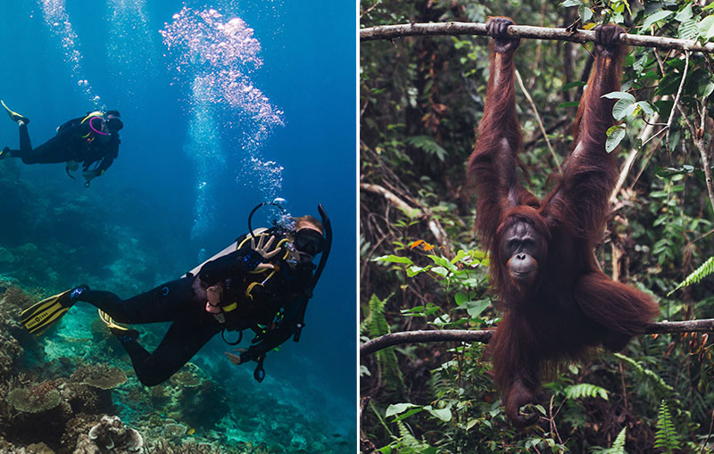 Oplev ægte junglestemning i Borneo hvor Orangutangerne har deres daglige gang eller tag på trekking ture på Java og oplev en af de 45 aktive vulkaner på øen. Er du til mere dyreliv, kan en tur til Komodo også varmt anbefales. Her kan du opleve Komodovaraner i deres eget habitat på en helt særlig ø, du ikke har oplevet før.