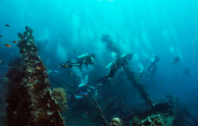 Det er fyldt med bevoksning og liv, og er grundet dybden egnet til alle niveauer. Forskere mener at have fundet over 500 forskellige arter i og omkring vraget, og tæt ved bor bl.a. en familie af pygmæsøheste i nogle smukke viftekoraller.