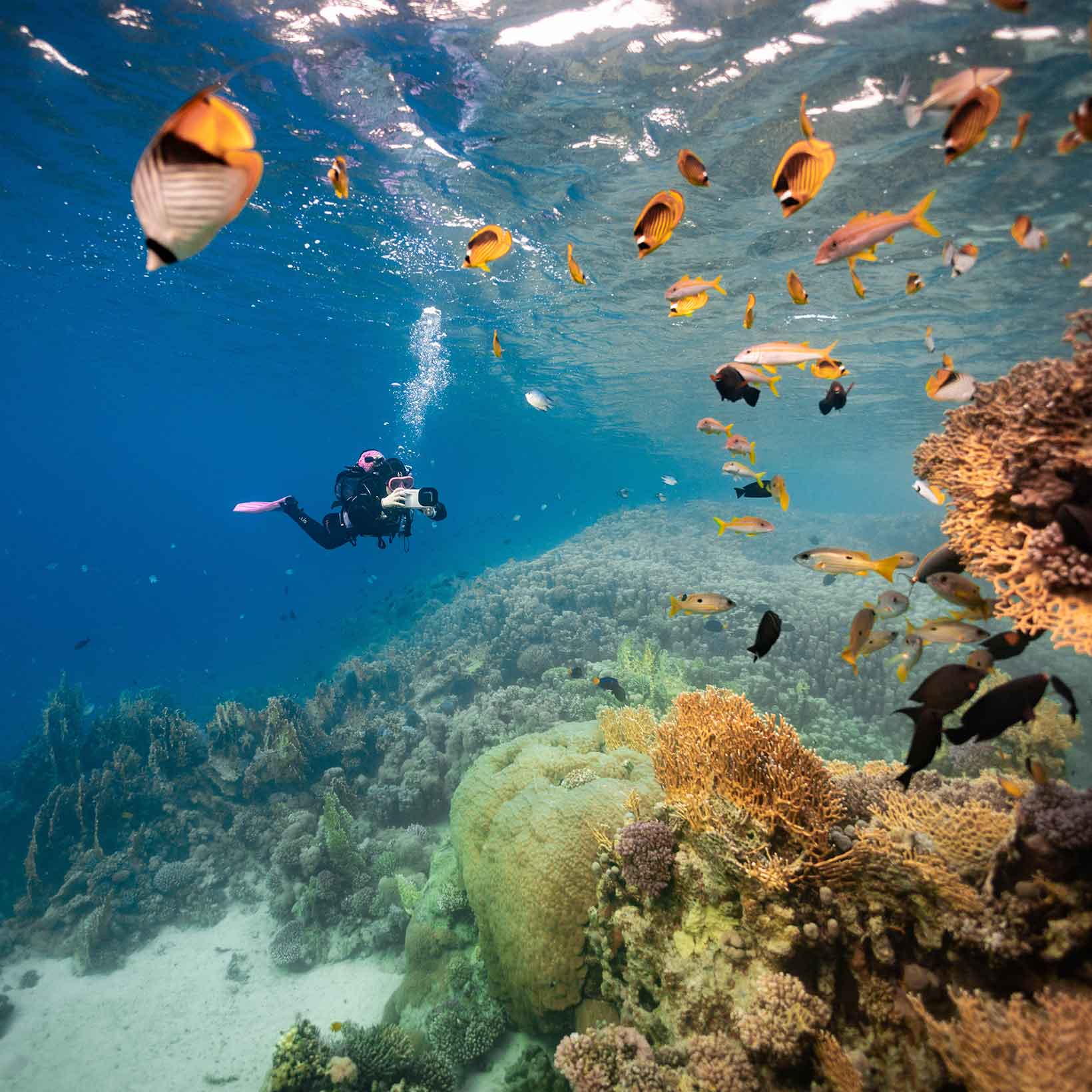 Vi arrangerer mange gruppe- og familierejser til Rødehavet, da det klare vand og nemme dykning appellerer til de fleste dykkere – Begyndere såvel som erfarne. På grund af det varme klima kan du dykke i Rødehavet hele året rundt.