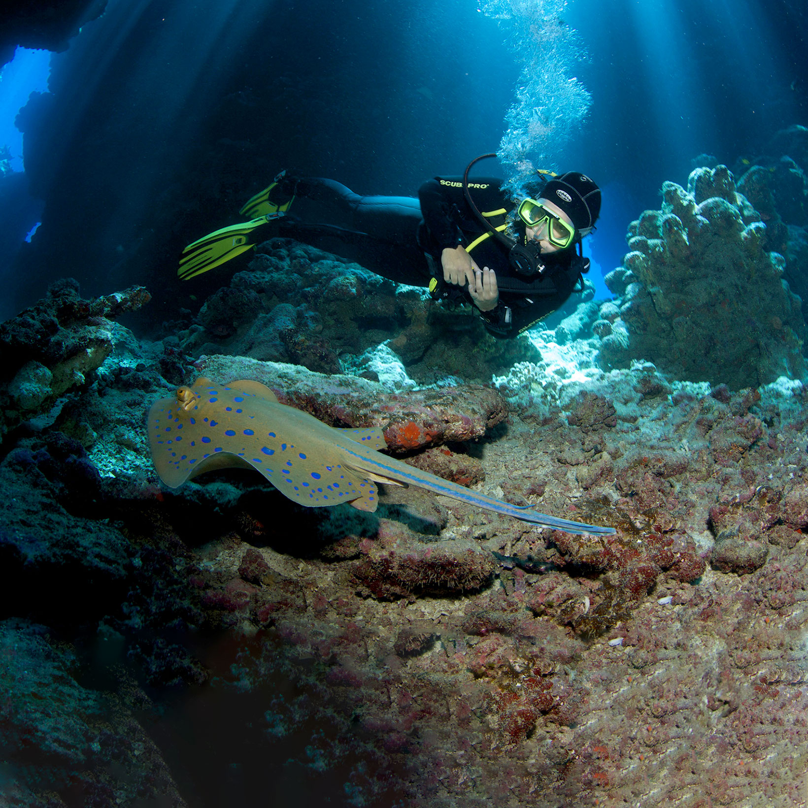 Rødehavet er blandt andet kendt for sine bestande af sky hammerhajer og nysgerrige longimanus, og du kan også være heldig at stifte bekendtskab med den sjældne rævehaj og sågar djævlerokker (manta rays). Sandsynligheden for at opleve alle disse fascinerende dyr er særligt god på liveaboards, da du har nem adgang til det dybe vand, som mange hajer foretrækker og kan nå at dykke med de morgenfriske hajer inden dagsturene fra kysten når ud til de fedeste dykkersteder!