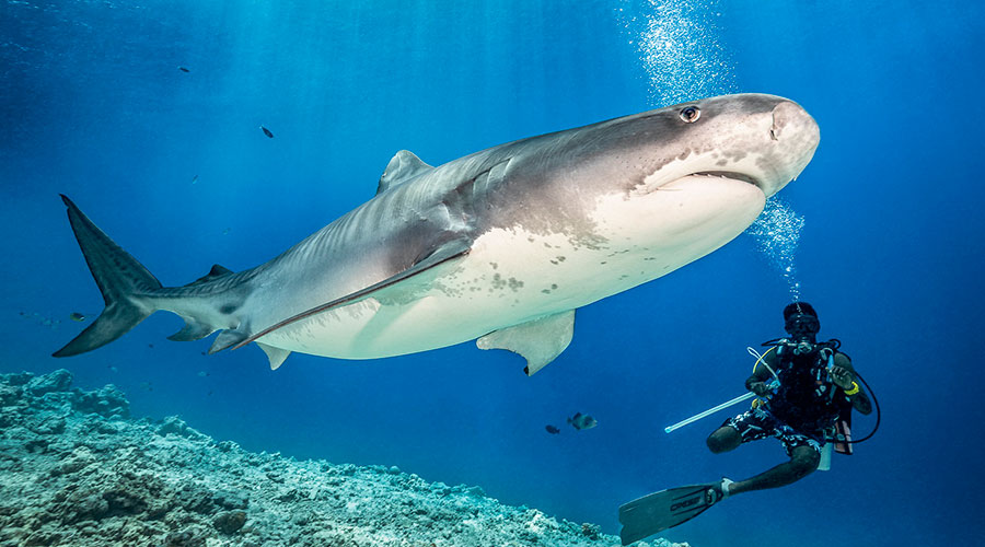 Tigerhajen er en nysgerrig opportunist - Hold øjenkontakt og "show no fear"