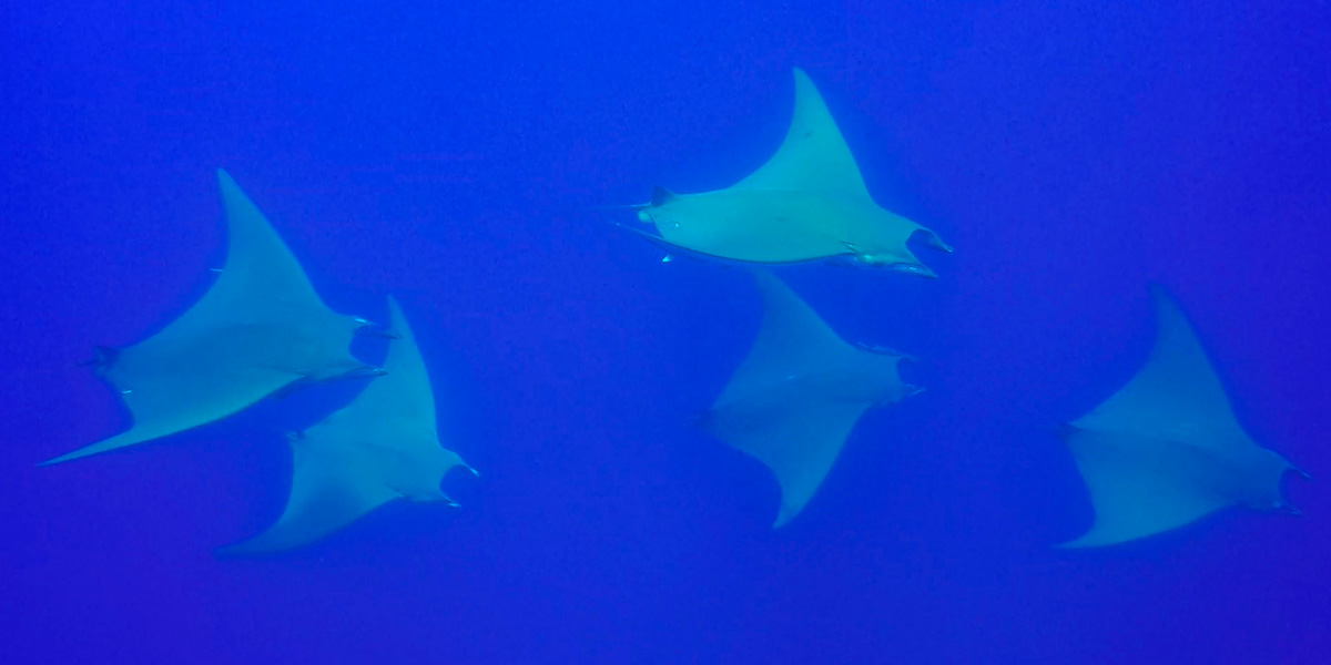 Tredje dag gik til Princess Alice Banks – et undervands-bjerg med toppen ca. 35 meter under vand beliggende 93 km sydvest for Pico, hvorfra sejlturen tager ca. 4 timer. Her blev vi begavet med mobula rokker – noget jeg aldrig havde været så heldig at se. Det var klart et højdepunkt på turen, og et lille plaster på såret efter vores uheld dagen før. Hvis nogen finder en Beuchat bly-lomme vil jeg gerne ha den igen. Den ligger mellem 35 og 2500 meter vand ;).