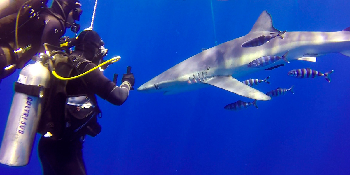 Jeg har dykket med hammerhajer, hvalhajer, tyrehajer og blåtippede hajer, men mødet med blåhajen står som en af de mest specielle
