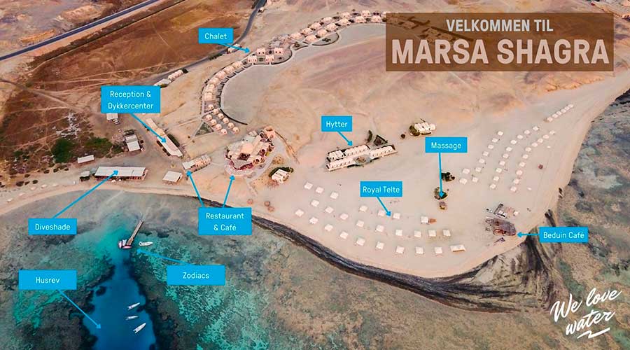 Udover ubegrænset snorkling & dykning er det også muligt at opleve den omkringliggende ørken ved ture på quadbikes, kameler og heste eller måske på en stjernetur under Egyptiske himmelstrøg. Der gælder det samme for Marsa Shagra som for vores andre dykkerlejre. Stemningen i lejren er fantastisk og personalet samt guiderne er meget venlige, professionelle og hjælpsomme - du vil vende tilbage gang på gang.
