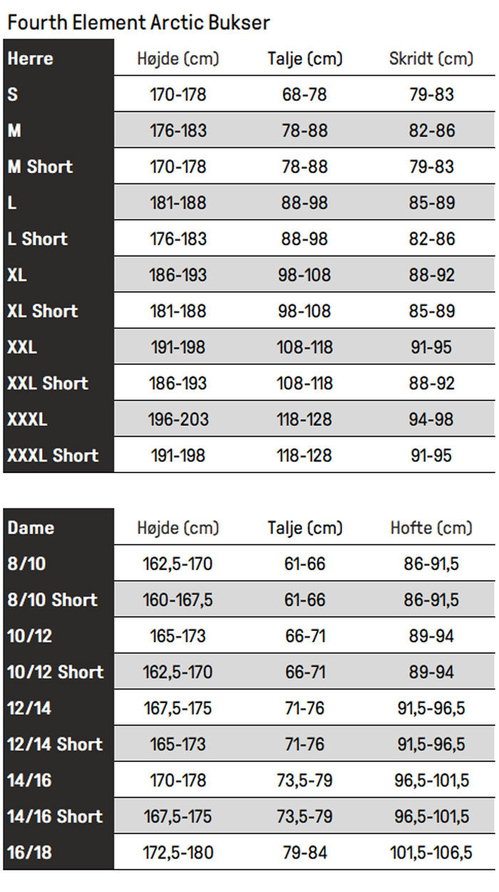 Vælg den rigtige størrelse på Fourth Element Artic buks ved at klikke på billedet med målskemaet til henholdsvis mænd eller kvinder.