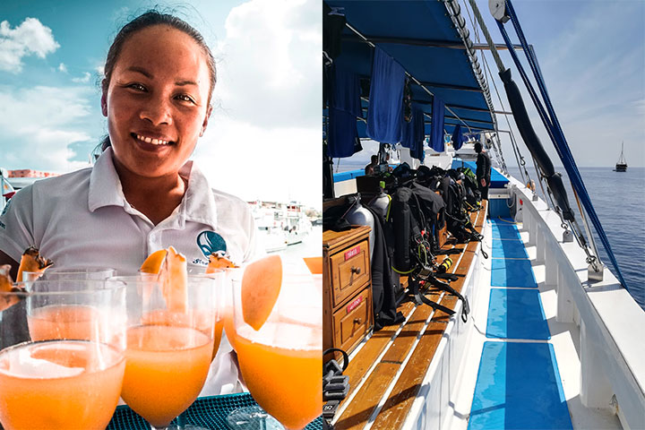 - Ubegrænset drikkevand, te, kaffe, frugtjuice og sodavand på Liveaboard