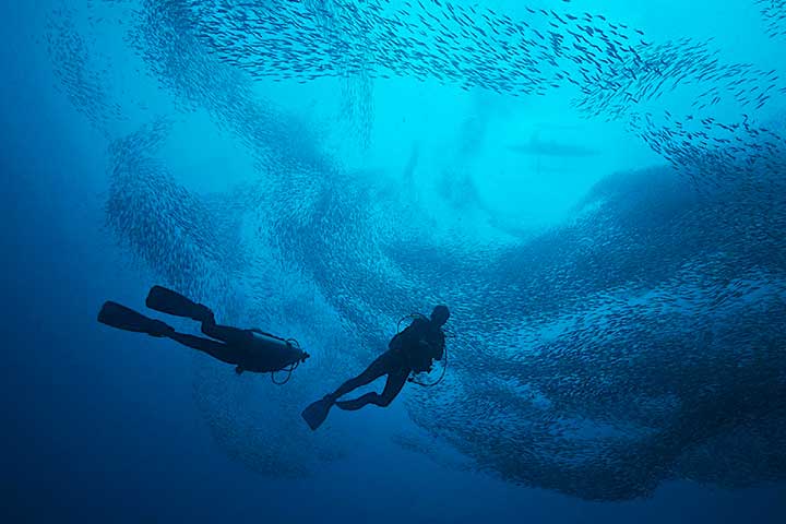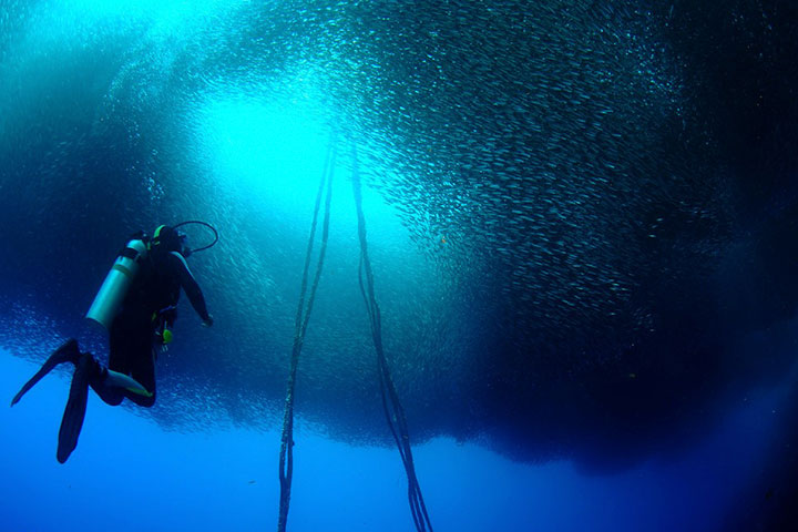 En af de mere spektakulære dykkeroplevelser i Moalboal er deres "Sardine Run", hvor millioner af sardiner sværmer omkring tæt på kysten i en stor Bait Ball formation. En utrolig smuk oplevelse. Pescador Island Marinepark er et must, når vi besøger Moalboal. Pescador Island er et af de smukkeste divesites i Filippinerne med farverige koraller og en utrolig stor diversitet af smukke fisk, havskildpadder og makroliv.