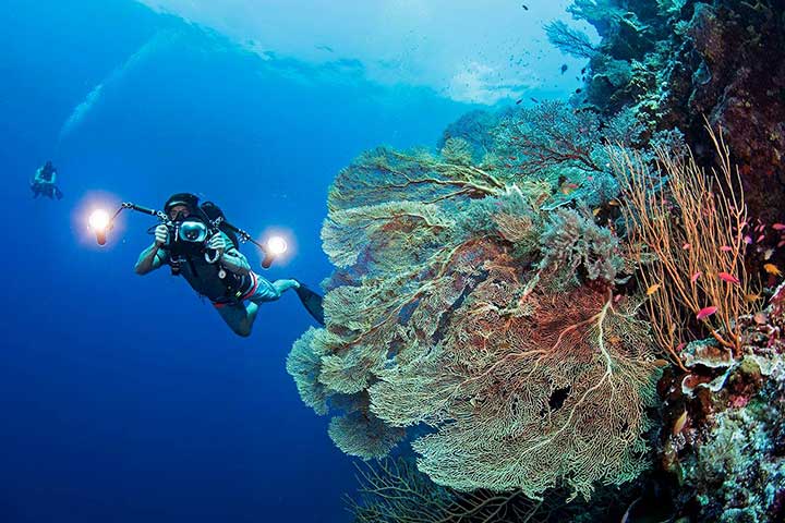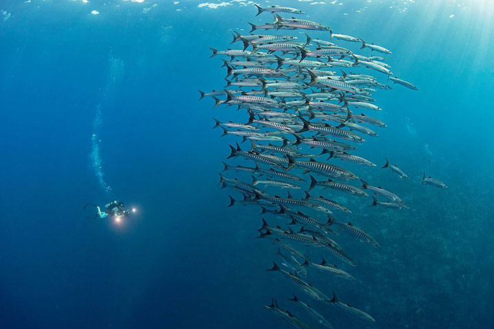 Dykkerstederne på turen består hovedsageligt af lodrette vægge eller drop-offs, der rejser sig op fra dybder, med lavvandede revtoppe der vrimler med revfisk: engelfisk, sommerfuglefisk, fanefisk, musketerfisk, trevaller, snappere og gryntefisk følger dig rundt, mens rokker, marmorrokker, store trevaller, tun og barracuda samt grå revhajer og hvidtip-revhajer bliver set cruise rundt i området.