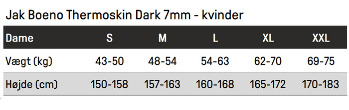 OBS. Jak Boenos kvindemodel er lidt små i størrelserne, så er du normalt en størrelse medium, skal du formegentlig bruge en størrelse large.