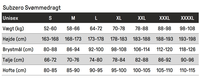 Subzero Skagerak kommer med en tykkelse på 3mm på torso og lår – de områder på kroppen der kræver mest varme. Arme og resten af benene har en tykkelse på 2mm, så du får større fleksibilitet i de områder der skal bevæge sig mest.
