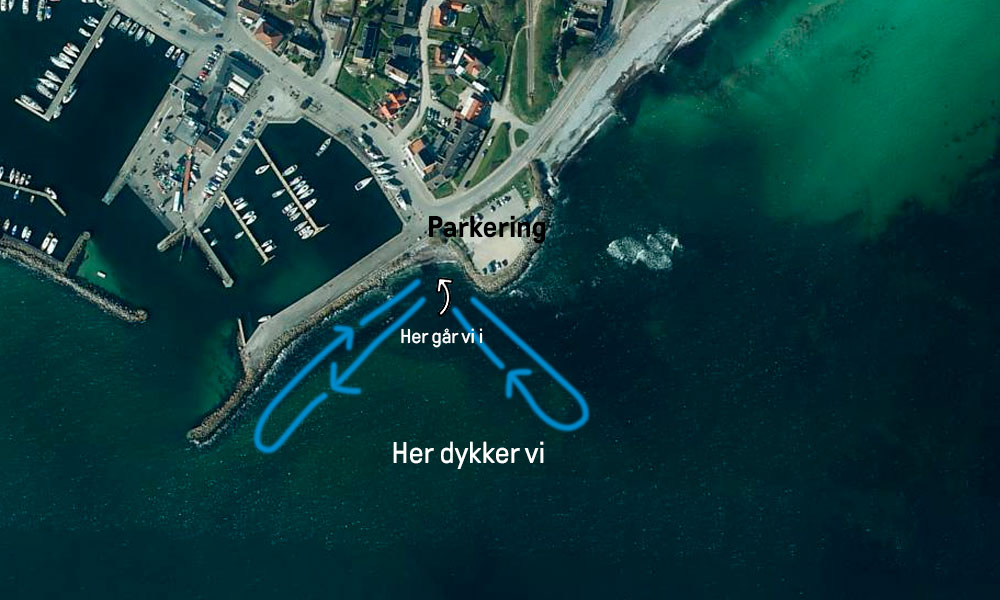 Dykket er et “ud og hjem”-dyk. Altså, en kompasretning ud og den modsatte hjem, da der er tale om ret lange distancer og en masser at se og opleve. Du kan nemt bruge en time på at dykke det beskrevne dyk.