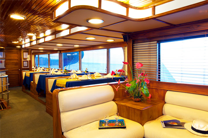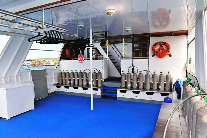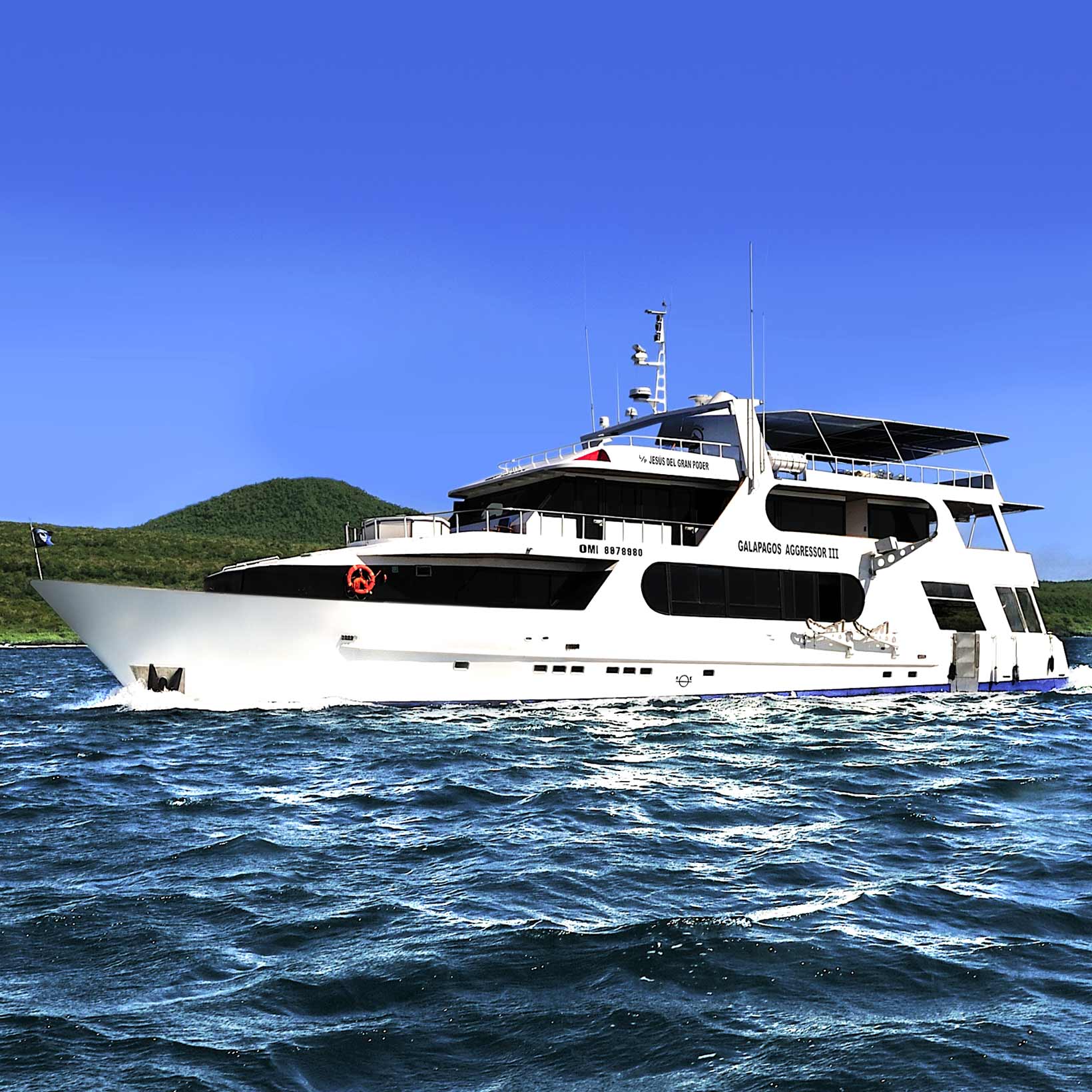 Galapagos Aggressor III liveaboarden er et velfungerende skib, som er indrettet genialt til dykkere. Der er god plads til kamera udstyr, velplacerede ladestationer, skyllekar til udstyr, varmeskab til håndklæder og andre lækre detaljer. Servicen ombord er med til at give et fantastisk helhedsindtryk af skibet. Besætning er topprofessionel og maden er fantastisk, hvilket giver dig de perfekte rammer til at nyde hvad vi mener bliver én af dit livs absolut bedste dykkerrejser.