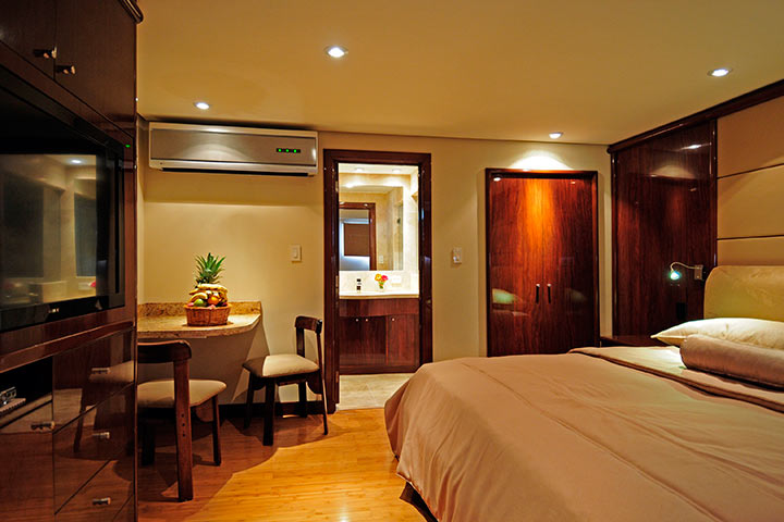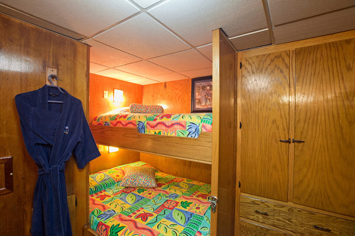 8 med enkeltkøje/dobbeltkøje, 2 med enkeltsenge, 1 suite med dobbeltseng med minibar og tv. Alle har også eget bad/toilet.