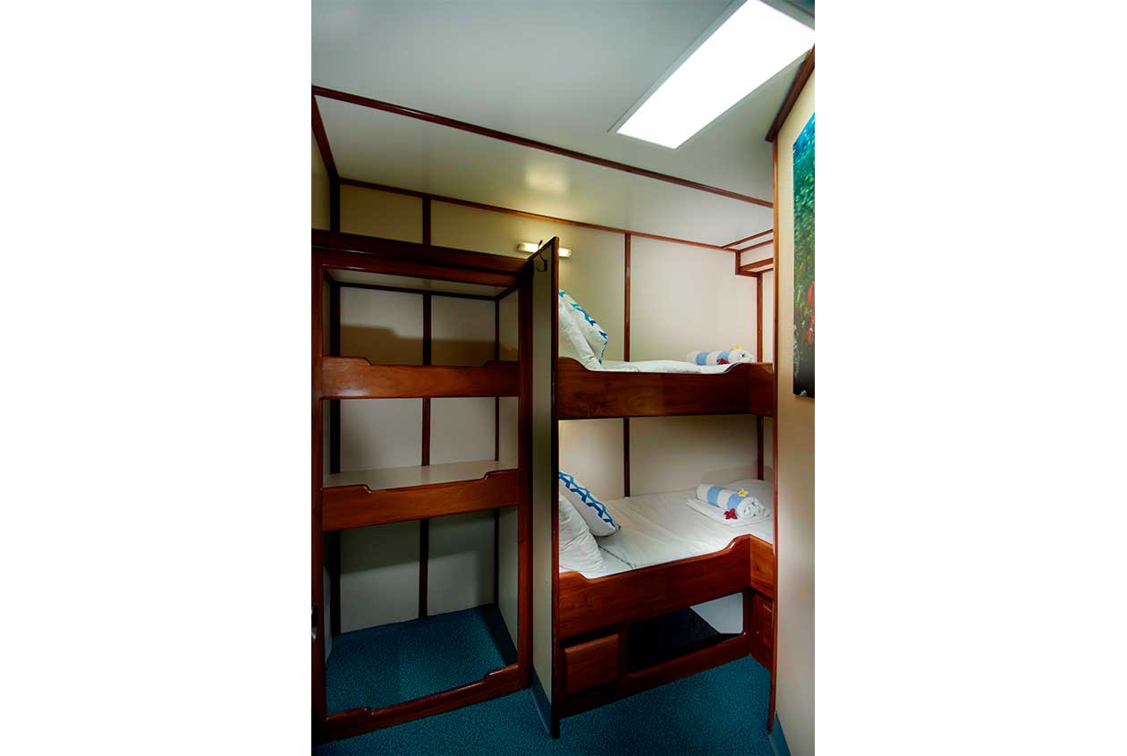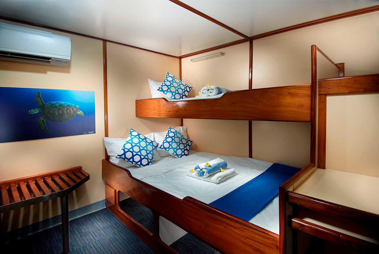 Skibet har 12 kahytter fordelt på 2 dæk og alle kahytter har aircondition.