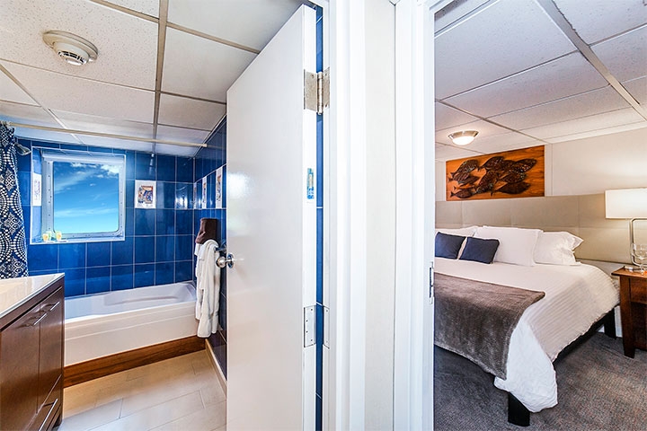 Her på øvre dæk er ligeledes en premiumsuite, der er dobbelt så stor som de andre suiter. Den har separat soveværelse (med dobbeltseng) og lounge – hver har eget TV, ligesom at der ensuite badeværelse med både badekar og bruser.