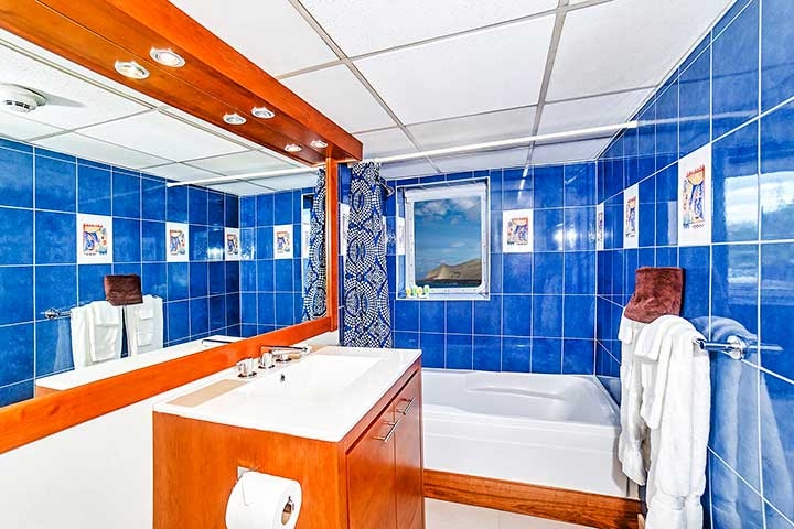 På øvre dæk ligger tre lyse suiter, der har store vinduer, der giver flot havudsigt. Hver af suiterne har klædeskab og skrivebord, der giver dig god mulighed for at opbevare dine ting. To af suiterne har døre, der åbner ud i den friske havluft, mens den tredje har et fladskærms-TV, som du kan slappe af ved.