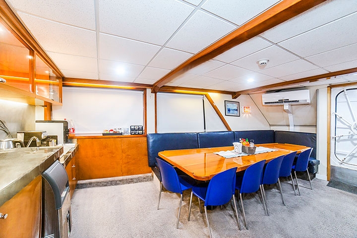 Båden har en komfortabel indretning og bygget til at tilgodese enhver dykkers behov og give dig en sikkerhed i top. Båden har lydisolering, så du overalt kan få så meget ro som muligt.