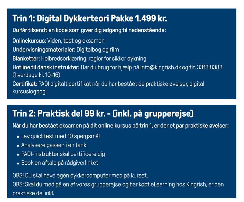 Kurset her er til dig, der drømmer om at tage dit dykkerkursus på din dykkerrejse med Kingfish.