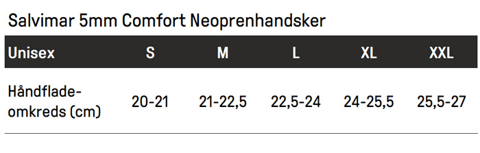 Størrelsesguide: Salvimar Comfort 5mm Neoprenhandsker