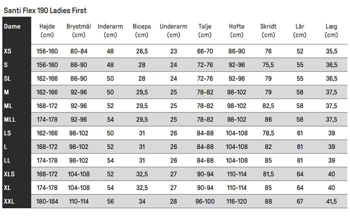 - Fås i 12 standardstørrelser: XS,S,SL,M,ML,MLL,LS,L,LL,XLS,XL,XXL