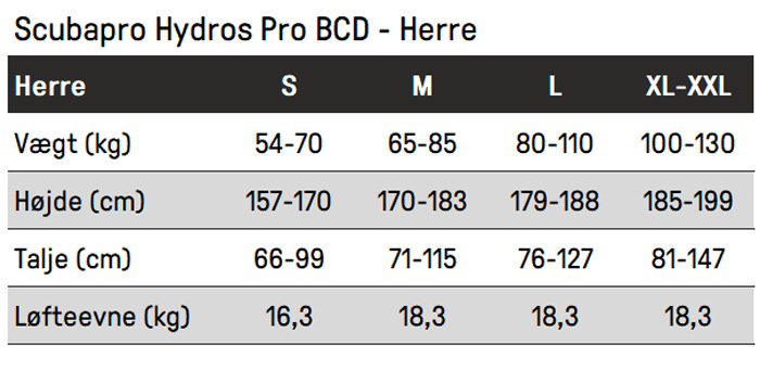 Størrelsesguide: Scubapro Hydros Pro - Herre