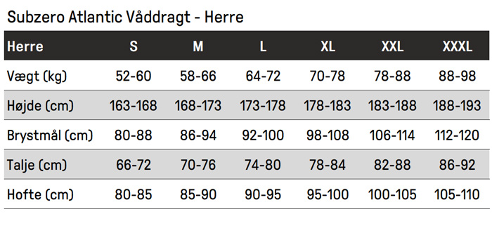 OBS: Våddragten er lille i størrelsen, så vi anbefaler at du vælger en størrelse større, end du normalt ville have gjort.