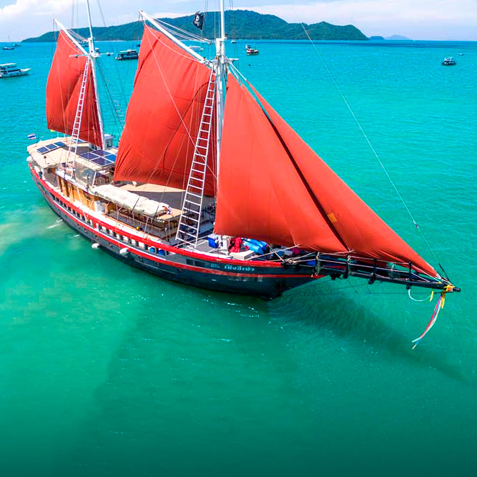 Thailand Master liveaboard er en stor flot sejlbåd der sejler det endnu ubesøgte og spændende Mergui Archipelago i Myanmar, samt de bedste ruter i Thailand. Liveaboarden er bygget med dykning som formål hvilket tydeligt ses i den velfungerende indretning og gode udnyttelse af pladsen ombord. Med andre ord kan du glæde til et helt særligt dykkertogt med dette smukke træskib.