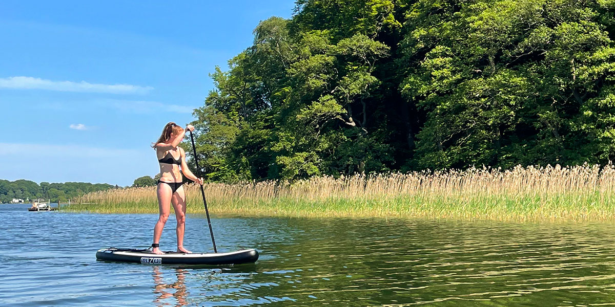 Det er ideelt at medbringe sit paddleboard til Furesø og tage på tur i den smukke natur.