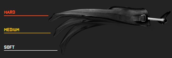 - Vælg mellem 3 forskellige niveauer af stivhed: XDEEP finnen EX1 kan vælges i 3 forskellige stivheder, så du kan få præcis den finne der passer til dine behov.